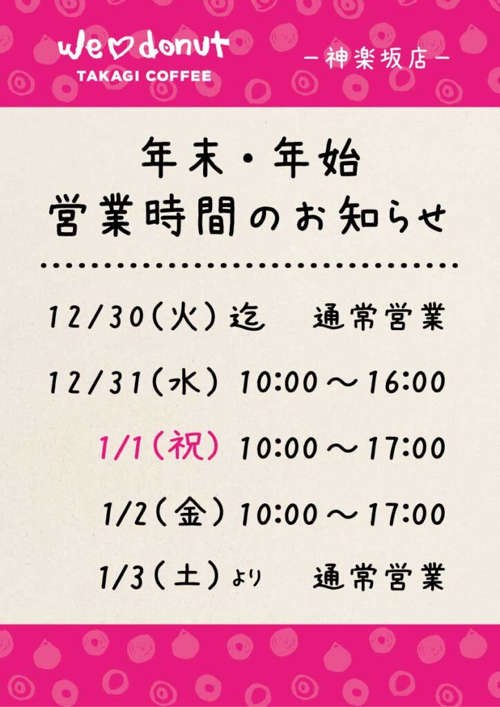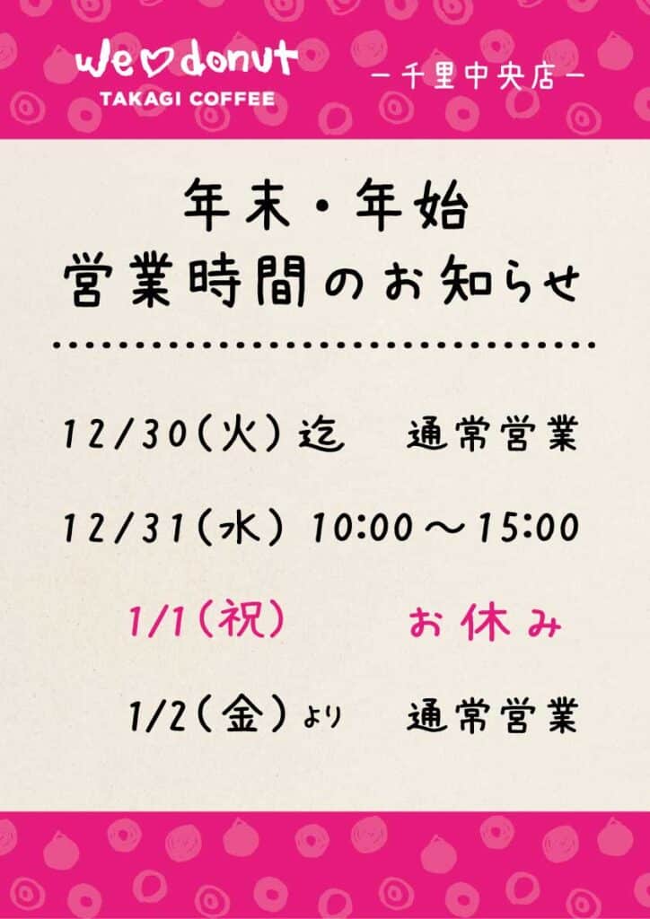 いつもwe♡donutをご利用いただき誠にありがとうございます。 店舗ごとに営業時間が異なりますので、画像にて各店舗の営業時間をご確認ください。 年末年始も皆さまのご来店をお待ちしております。 年末年始 店舗情報 営業時間 年末年始 新年 生ドーナツ 関連記事 【期間限定】満足感ケーキ級のドルチェクルーラーが登場! ! November 28, 2025